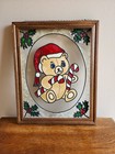 VTG Stained Glass Christmas Bear Panel Framed Wood Window Suncatcher Gallery