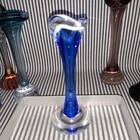 Vtg Pilgrim Glass Cobalt Blue MCM Candle Stick Holder Set Hand Blown Textured