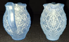 SET OF 2 VTG LE SMITH DAISY BUTTON BLUE FROST TOOTHPICK HOLDER URN & PITCHER JUG