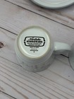 This vintage set of 2 Corning Ware Coral Pink Salmon Coffee Cup Mugs is a charming addition to any kitchen or dining area. Made in Corning, NY, these round ceramic mugs feature a solid pink color and a glossy finish. With a capacity of 10 oz to the rim, these contemporary-style mugs are microwave safe and perfect for all occasions. The art pottery production style and technique of these original vintage pieces add a unique touch to your coffee or tea drinking experience.