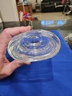 The Fostoria Heirloom Vaseline Opalescent Glass Replacement Epergne Candle Holder is a vintage piece from the Mid 20th Century, made in the United States. This yellow glass candle holder features a glossy finish and was hand-blown, showcasing the Mid-Century Modern style popular at the time. The Fostoria brand is known for its original and high-quality glassware, making this epergne candle holder a sought-after piece for collectors of decorative pottery and glassware. Measures 4 1/2" across the top and stands 3 1/4" tall.