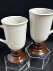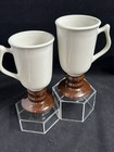 Hall 1273 Footed Brown White Irish Coffee Mug 6” Tall Made in USA Pair (2) VTG