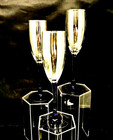 Champagne Flutes Clear Glass Bowl Amethyst Lavender Purple Pulled Stem THREE (3)