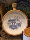 Vintage French pottery wall plaque bowl and crock set. Made in France, featuring a rustic, earthy finish. Both pieces feature a blue pastoral design. The bowl has a built-in handle with a hole for easy hanging, making it perfect for wall display in a farmhouse, Mediterranean, or cottage-style space. Marked on the back Fabrique In France, consistent with mid-century production. The warm terracotta tones and hand-finished look give these pieces great character. Size: Bowl 8" diameter Crock 5" x 4.25" Condition: Really nice vintage condition. No cracks or repairs noted. Displays beautifully. A great decorative piece for adding texture and authentic French charm to your home.