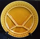 4 Vintage French Majolica Sarreguemines Pottery Set Divided Fondue Plates 9”