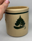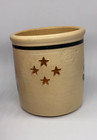 Tan and Green Shadow Lawn WI Salt Glaze Pottery Utensils Crock with cut Stars