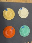The product is a set of four Fiesta Ware saucers, Saucers are assortment of colors. 6” diameter