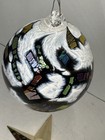 Large Art Glass Paperweight- Butterflies, Bubbles And Floral Explosion 3.5 inch