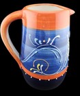 CERAMICA ANORA Spanish Ceramic Pitcher Hand Painted Blue Orange 9"Hx6.5"W