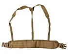 Genuine US Military Surplus USMC Padded Sub Belt with Suspenders. These belts are Coyote brown in color and the size small features 3 rows and 16 columns of MOLLE webbing. The waist belt features a 2" side release buckle closure, and the suspenders are removable.