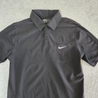 The product is a rare black Nike Tour Performance Polo shirt for men in size small. It features a short sleeve design, medium fabric wash, and is made of polyester material. This golf shirt includes a stylish pocket detail and is part of Nike's Golf product line, specifically designed for performance on the golf course. The standard fit and classic polo style make it a versatile and practical choice for any golfer looking to elevate their wardrobe.