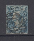 ANTIQUE GERMAN STATES SAXONY 1856 JOHN I 10 No. BLUE N.12 USED HIGH Q.