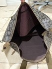 Canvas webbing construction. Has heavy vinyl lining. CONDITION: Pre-owned, very good. Clean inside. Shows normal wear. SHOULDER STRAP DETAILS.