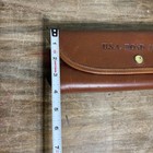 Vintage The Executive Tie Traveler case crafted from smooth, cognac-colored leather with elegant gold-tone foil lettering. Designed for the sophisticated traveler, this slim accessory keeps neckties organized and wrinkle-free during transit. The case features a "Push In Here" and "Pull Out Here" mechanism for easy access, accented by refined perimeter stitching. Ideal for business trips or as a classic addition to a gentleman's luggage collection. Measurements: Please see photos for measurements. Items will ship with tracking information. I ship every morning Monday- Saturday. Please ask any questions before you purchase.