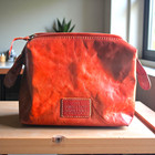 Naturally distressed cognac brown top grain cowhide, the bag is truly unique. Clean suede lining, adjustable and removable shoulder/crossbody strap.