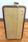 Vtg Yellow Checkered Tweed & Brown Leather Suitcase 1940s Luggage 18x21x9 VGC