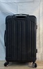 Black Hardside Spinner Suitcase. • Durable hardside construction with protective vertical ribbed detailing. Condition: Very good pre-owned condition. The exterior shell shows minor light scuffing and superficial marks consistent with light travel use.