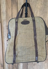 Vintage Lark luggage bucket style carry on Tweed footed, zip closure