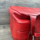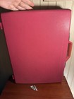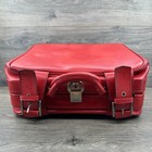 Vintage Carry On Leather Weekender Hard Frame Suit Case Red Strap Buckle 16 x 14