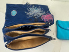 Ada Lum Asian Satin Silk Travel Jewelry Roll Zippered Compartment Pouch x2 Blue