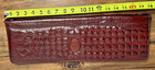 VTG Red Envelope Leather Excursion Travel Toiletry Case Bag Trifold Brown Gold
