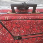Vintage 70s Red Paisley Suitcase JAPAN Spots on inside, pictured. 19x12x6 soft side canvas, feet on bottom, original key. Aside from interior spots the bag is in very good vintage condition. No tears or musty odors. Beautiful color