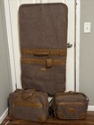 Vintage Pierre Cardin Brown Tweed Luggage Set. Carry On, Suitcase & Suit Carrier