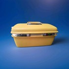 The Vintage JC Penney Aspen Train Makeup Case Luggage in yellow is a true vintage piece from the 1960s, made of hard plastic with a mirror feature. This travel accessory is a unique and compact piece, perfect for those who appreciate retro travel items. With a classic yellow color and a sleek design, this makeup case luggage exudes a sense of nostalgia and charm, making it a standout piece in any collection of vintage luggage and travel accessories. Made in the United States, this item is a testament to the quality craftsmanship of the past.