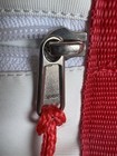 Beautiful, white and red sailor bags 22 x 12 x 10” Gorgeous stitching on the outside Sky blue on the inside it looks like it’s never been used on the inside Outside has some marks look at pictures, please. This is a good sturdy quality bag Very eye-catching If you have any questions, please ask We’ll ship super fast