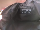 This auction offers the TUMI for Delta Zip Pouch Travel Case Cosmetic Bag in purple. It is a stylish and practical toiletry bag designed for travelers. With dimensions of 8" x 6", it provides ample space for storing makeup, hair styling tools, and other beauty essentials while on the go. Made by the reputable brand TUMI, known for their quality and durable products, this travel case ensures your cosmetics are organized and protected during your journeys. Minor sticker residue on top right front. Shipping is $5.26.