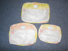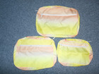 THIS IS A SET OF CALPAK SET OF 3 ZIP-AROUND TRAVEL PACKING CUBE POUCHES. ALL ARE IN EXCELLENT CLEAN NEWER CONDITION. ALL ACTUALLY LOOK NEW AND UNUSED. THE BIGGEST ONE MEASURES 16" X 12" X 2 1/2". WE SHIP EVERY DAY, UNLESS WE ARE ON VACATION.