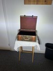 The product is a vintage McDonald's suitcase from the 80s, featuring advertisements for French fries on the luggage. This unique travel case is perfect for kids who love retro memorabilia and want to make a statement with their luggage. The suitcase is branded as French Luggage, adding to its charm and nostalgia for those who appreciate vintage items. It is a fun and eye-catching way to transport belongings while traveling, making it a stylish choice for children who want to stand out from the crowd. Missing piece of plastic at bottom please see pictures
