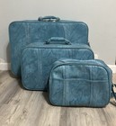 American Tourister Vintage 1970s Blue Vinyl Luggage Set 3 Pieces Locking (RARE)