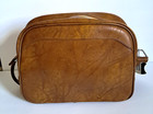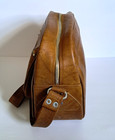 Vintage Leather Patchwork Duffel Travel Bag Satin Lined Handle & Strap Multic
