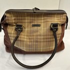 Vintage Eddie Bauer Brown Plaid Canvas & Leather Travel Duffle Satchel Bag