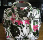 Roxy Weekender Carry On Bag Tropical Floral Coated Cotton Canvas PINK & GREEN