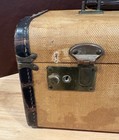 See all photos - hardware and handle all present- not the prettiest but it is still a wonderful little case. Dimensions in photos The product is a vintage train case from the 1930s, made of beige tweed with leather trim. It features a hard casing, locking mechanism, and a stripped-down interior. This antique travel bag exudes a retro charm and offers a unique addition to any vintage luggage collection. Its durable construction and classic design make it a functional and stylish choice for those seeking a piece of history in their travel accessories.