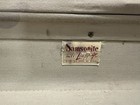 Incredible unique piece. Covered in remnants of collegiate pennant stickers. Chicago made with “Bassett” Hardware (also Chicago based). Floral paper lining. Great for display or decor. Sold as is please see photos! Measures approximately 28x15x8.5”